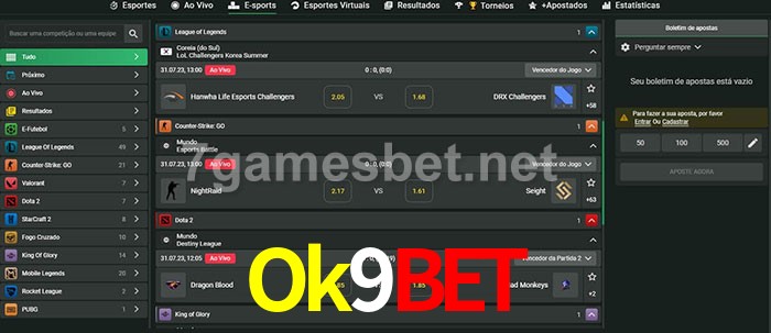 O Ok9Bet oferece uma grande seleção de opções de apostas em e-sports com probabilidades competitivas